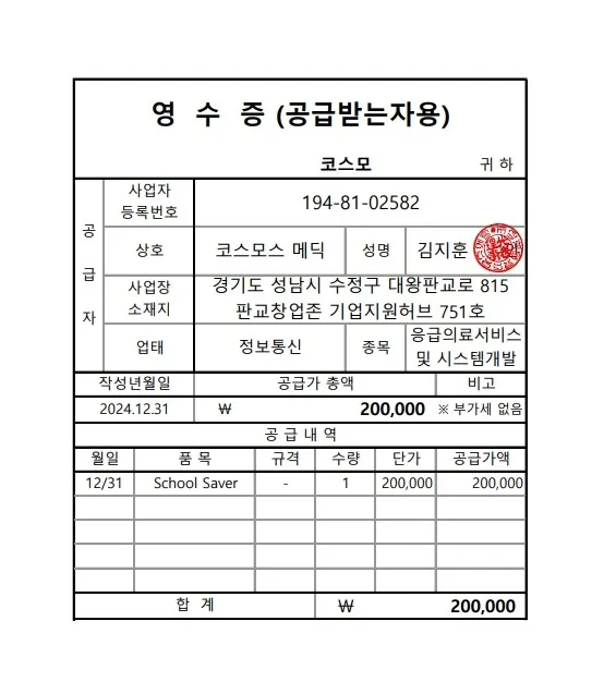 계좌번호: 신한은행 100-035-544855 (주)코스모스 메딕 김지훈
